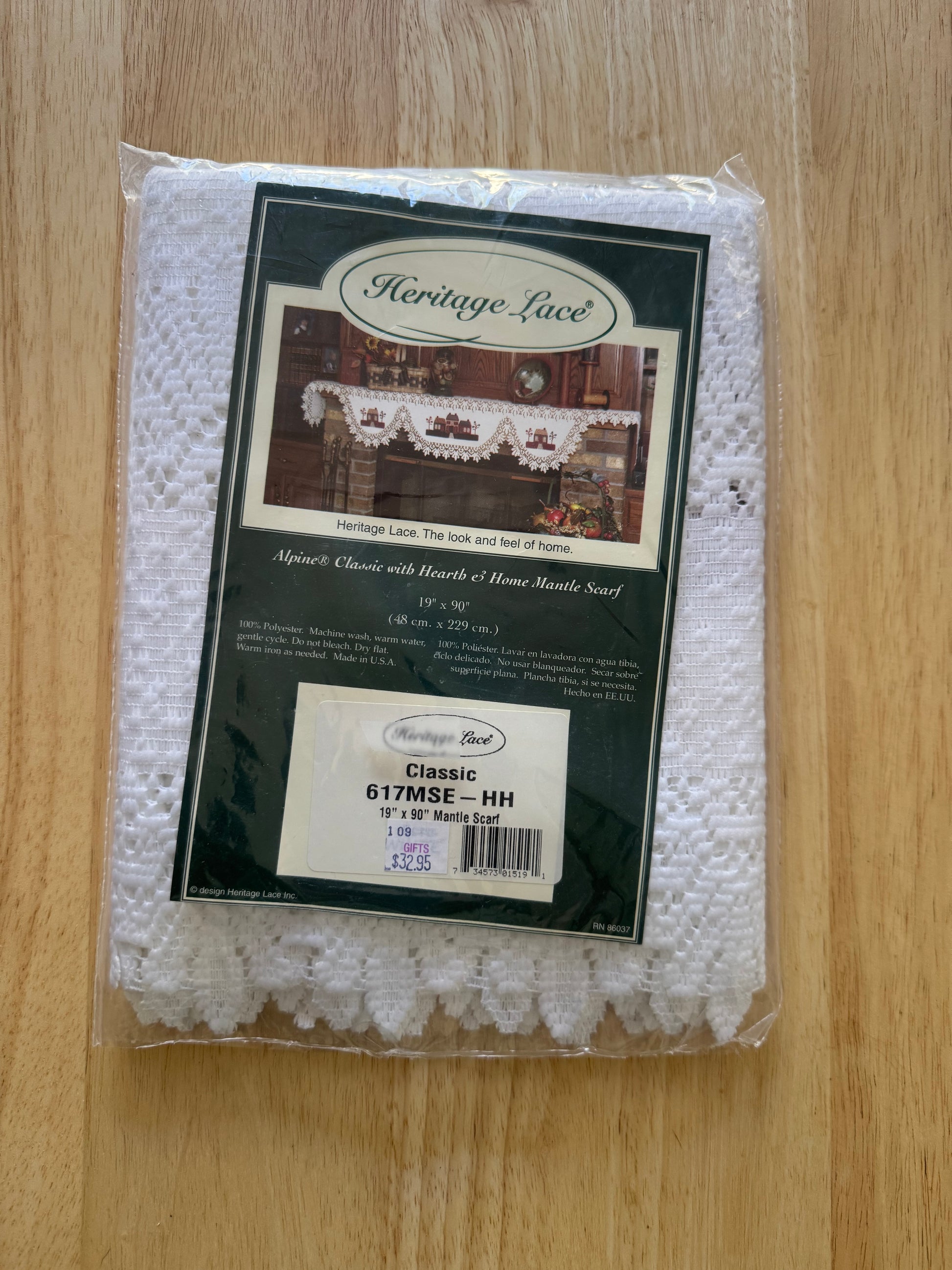 Drape your mantle with timeless elegance using this classic Hearth and Home scarf. At 19" x 90", it's the perfect length to frame your fireplace with graceful folds and seasonal charm.